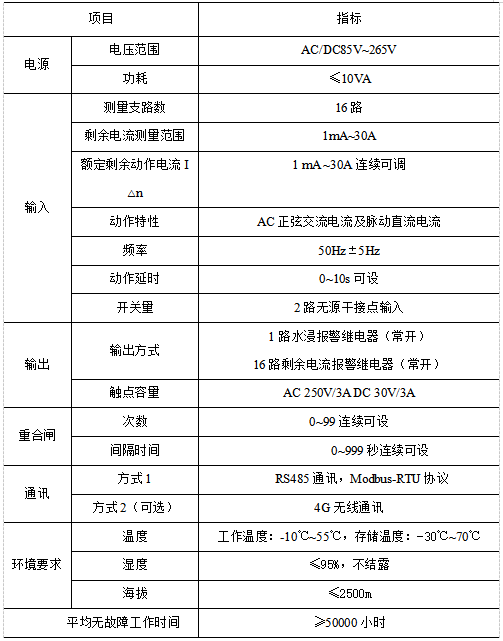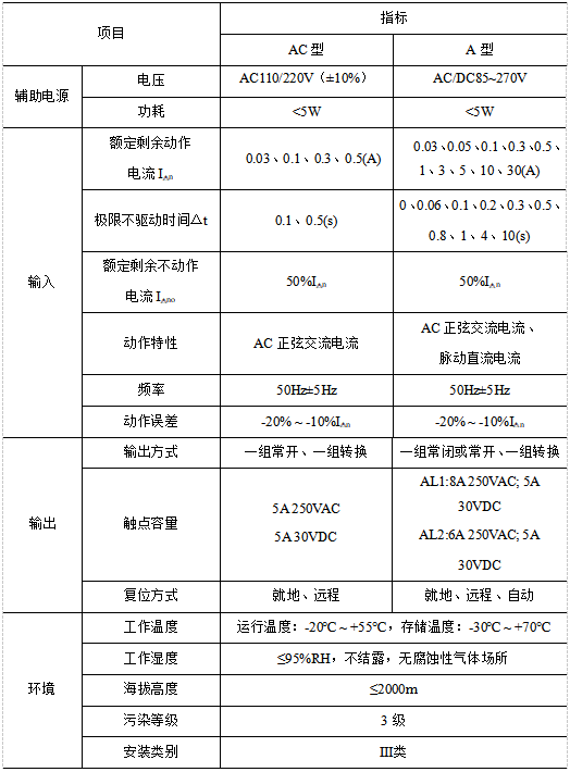 ASJ10/20系列剩余電流動作繼電器技術指標