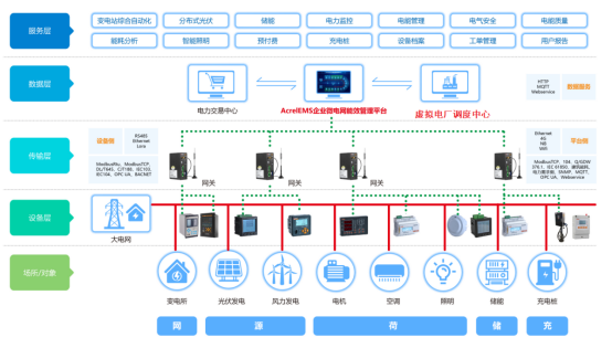 AcrelEMS企業(yè)微電網(wǎng)數(shù)字化系統(tǒng)融合企業(yè)負(fù)荷側(cè)的電力監(jiān)控、能耗統(tǒng)計(jì)、電能質(zhì)量分析及治理、智能照明控制、主要用能設(shè)備監(jiān)控、充電樁運(yùn)營管理、分布式光伏監(jiān)控、儲(chǔ)能管理等功能,用戶通過一個(gè)平臺(tái)即可全局、整體的對(duì)企業(yè)微電網(wǎng)進(jìn)行進(jìn)行集中監(jiān)控、統(tǒng)一調(diào)度、統(tǒng)一運(yùn)維,同時(shí)滿足企業(yè)用電可靠、安全、節(jié)約、高效、有序用電要求。