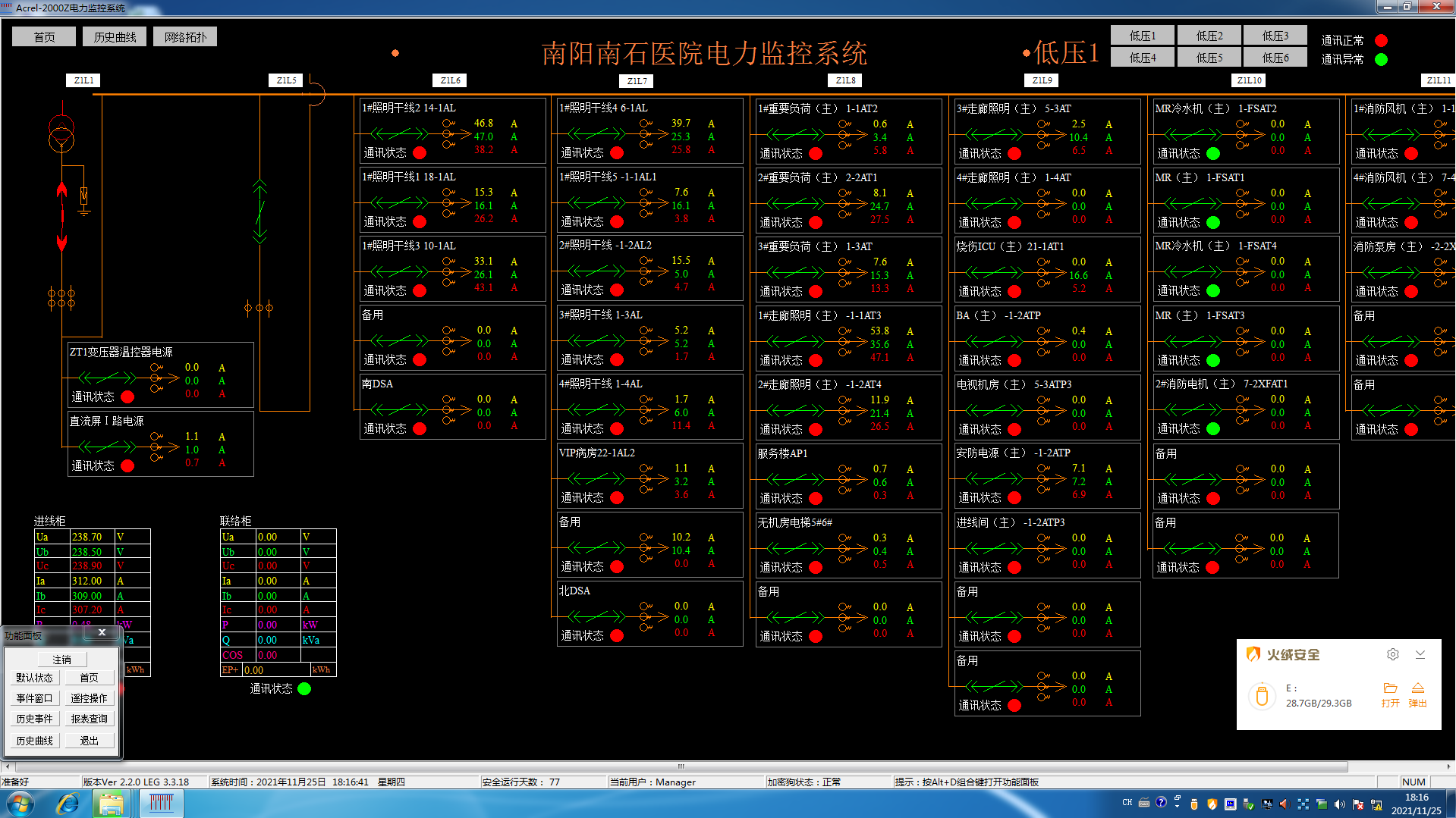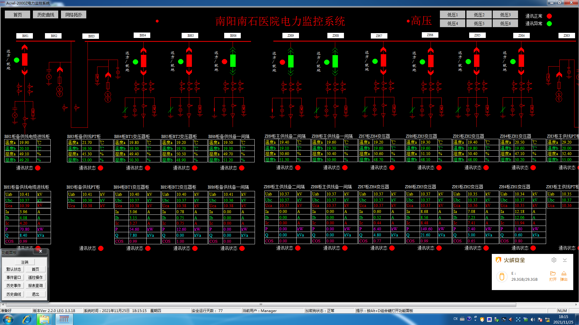 南陽市南石醫院配電配電項目電力監控系統包含變電所電表,對變電所的低壓配電回路進行遠程實時監控和電能管理。