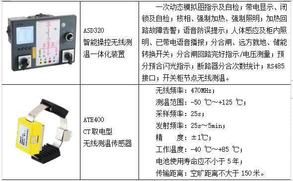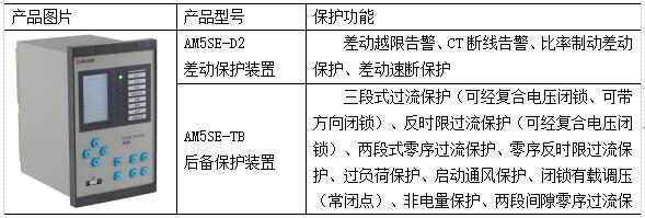 本次針對該35kV配電工程項目中不同保護對象配置不同微機保護裝置,35kV主變柜按主保護加后備保護配置:差動保護裝置AM5SE-D2、高后備保護裝置AM5SE-TB、高側測控裝置AM5SE-K、低側測控裝置AM5SE-K;35kV進線柜配置AM5-F線路保護裝置;10kV電容補償柜配置AM5-C電容器保護裝置;10kV變壓器出線柜配置AM5-T變壓器保護裝置;10kV分段柜(預留)配置AM5-B備自投保護裝置;10kV母線設備柜配置AM5SE-UB PT并列及監測裝置,10kV出線柜配置AM5-F線路保護裝置。針對各高壓開關柜配置智能操控無線測溫一體化裝置ASD320,每面開關柜配置6點測溫,其中,PT柜配置電池型無線測溫傳感器ATE200,其余高壓開關柜配置CT取電型無線測溫傳感器ATE400。各型號產品主要實現的功能如下: