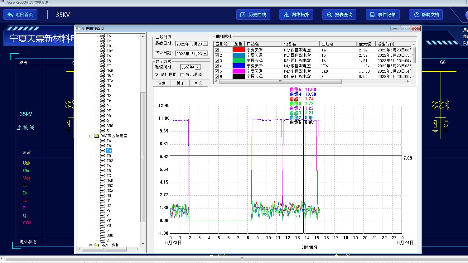 8)曲線查詢:能夠查詢實時曲線和歷史曲線,包括三相電流、三相電壓、有功功率、無功功率、功率因數等所有遙測量。