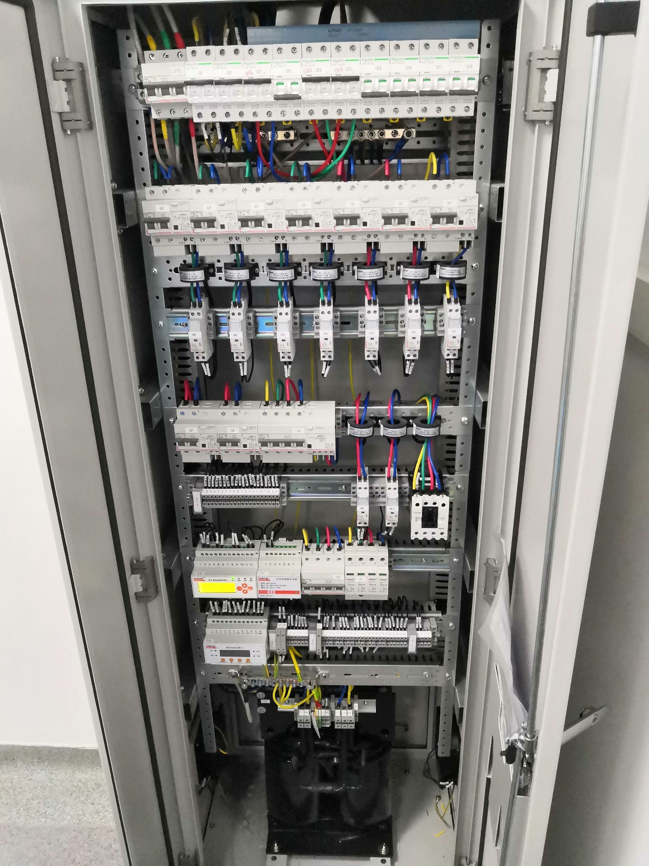 本次項目的應用場所為二類場所區域,其中NICU的重要負載為護理吊塔,須使用不接地系統(IT系統)來供電。單個醫用吊塔的功率約為1.5kVA,項目中選擇使用10VA容量的隔離變壓器同時為6臺醫用吊塔供電。因為隔離變壓器在啟動時會產生較大的沖擊電流,可能會造成隔離變壓器一次側斷路器斷開或閉合困難,所以本項目在選擇隔離變壓器進出線的斷路器時,按照國標選擇了只有短路保護功能沒有過負荷保護功能的斷路器,斷路器脫扣曲線應為D型。項目中使用了醫療隔離電源產品5件套的搭配,共用了9套隔離電源系統,產品包括10kVA的醫用單相隔離變壓器AITR10000,絕緣監測儀AIM-M100,保護型電流互感器AkH-0.66P26,電源模塊ACLP10-24,報警顯示儀AID120。NICU區域裝有9臺隔離電源柜,每臺配電柜內裝有一套系統,配電柜落地安裝于樓層配電間,報警顯示儀嵌墻安裝于護士站走廊墻壁。