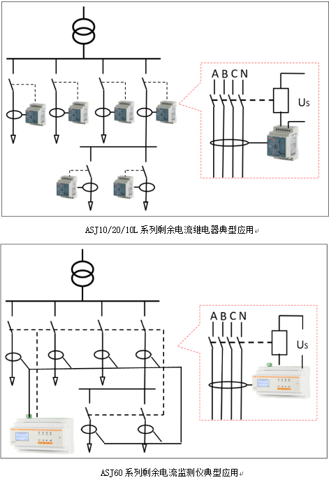 ASJ系列剩余電流動作繼電器和多回路剩余電流監測儀可與低壓斷路器或低壓接觸器等組成組合式剩余電流保護裝置,主要適用于交流50Hz,額定電壓400V及以下的TN和TT系統配電線路,用來對電氣線路進行剩余電流監測及接地故障保護,防止接地故障電流引起的設備損壞和電氣火災事故,也可用來對人身觸電危險提供間接接觸保護。