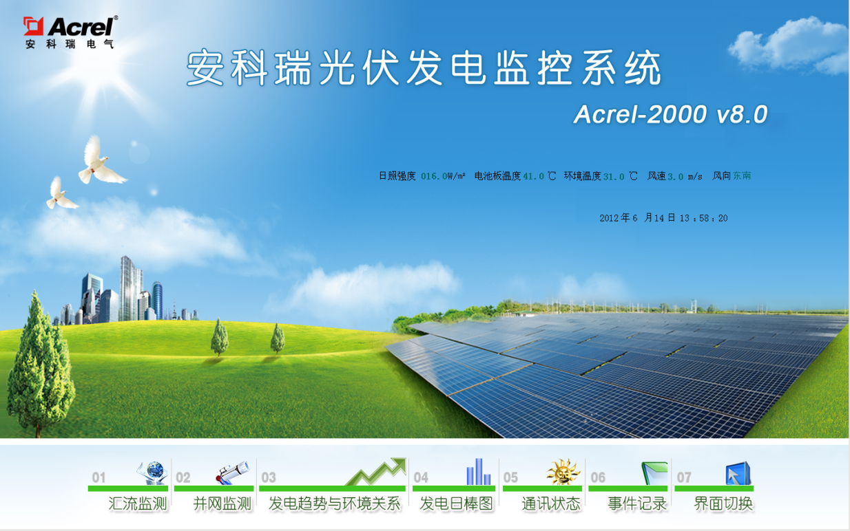 Acrel-2000 V8.0光伏發電監測系統是安科瑞針對建筑光伏發電系統開發的軟件平臺,對裝機容量在幾十千瓦至兆瓦級建筑光伏電站里的逆變器及并網設備等進行實時監測和遠程參數設置,通過各種樣式的圖表及數據快速掌握電站的運行情況,具有數據統計、發電效率評估以及氣象條件監視、故障報警等功能,確保建筑光伏發電系統的可靠和穩定運行。