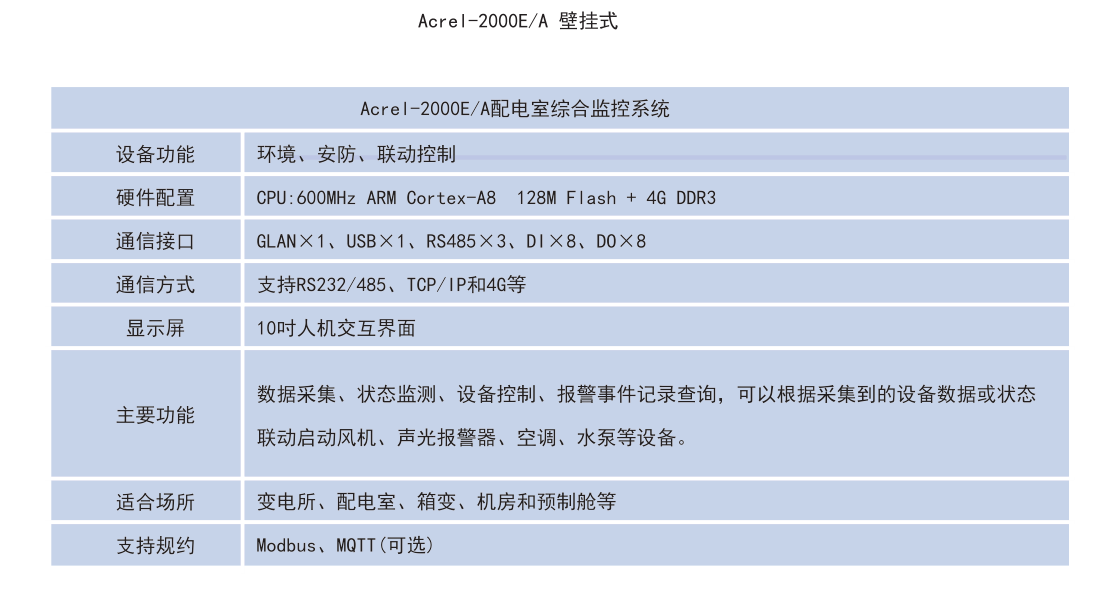 由于硬件資源以及系統(tǒng)軟件上的差別,Acrel-2000E/A作為針對變電所配電室的環(huán)境輔助監(jiān)控系統(tǒng),只對環(huán)境參量設備進行在線監(jiān)測;而Acrel-2000E/B與Acrel-2000E/G作為硬件資源豐富,系統(tǒng)功能更為強大的設備,可以配合我司無線測溫以及電力儀表進行在線監(jiān)測。