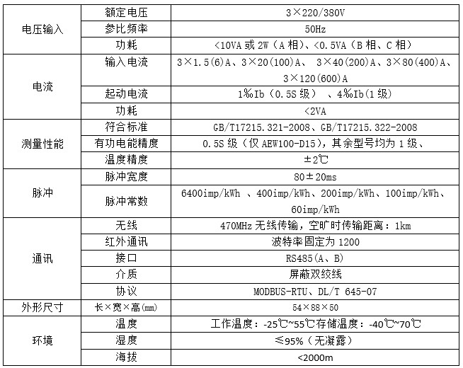 AEW100無線計量儀表主要用于計量低壓網絡的三相有功電能,具有RS485通訊和470MHz無線通訊功能,方便用戶進行用電監測、集抄和管理。