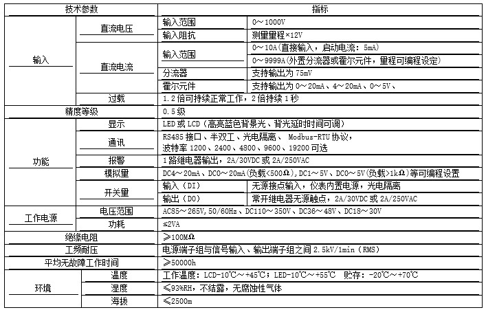該系列儀表可測量直流系統(tǒng)中的電壓、電流、功率、正向與反向電能。可帶RS485通訊接口、模擬量數(shù)據(jù)轉(zhuǎn)換、開關(guān)量輸入/輸出等功能,既可用于本地顯示,又能與工控設(shè)備、計算機連接,組成測控系統(tǒng)。